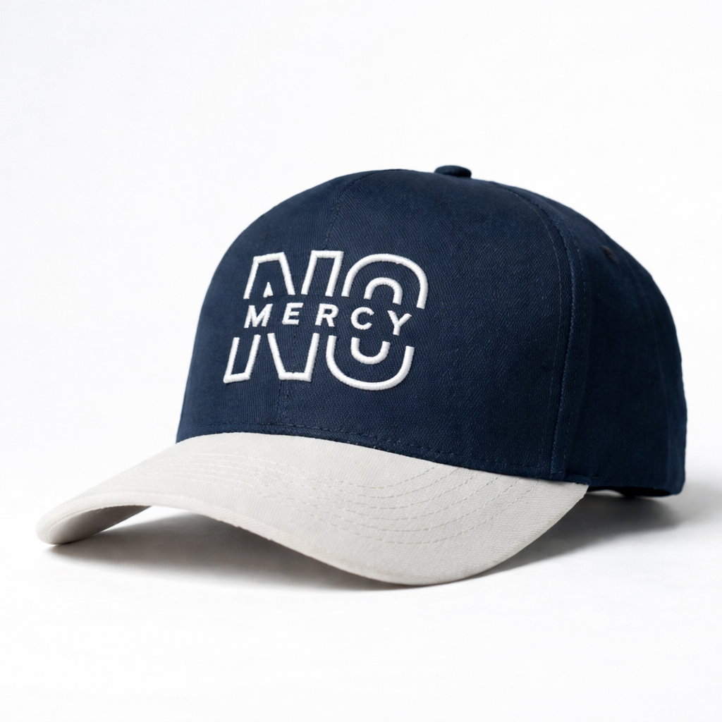 Step up your style game with the Cap Wear Premium “No Mercy” Cap, a bold statement piece crafted for those who never back down. Designed in an elegant navy blue crown with a white visor, this cap perfectly blends confidence with street-ready fashion.The front features an eye-catching “NO MERCY” embroidery, symbolizing strength, determination, and a fearless mindset—a perfect reflection of those who move forward with purpose and confidence. The subtle side branding of “Caps Wear” adds a final touch of premium authenticity.